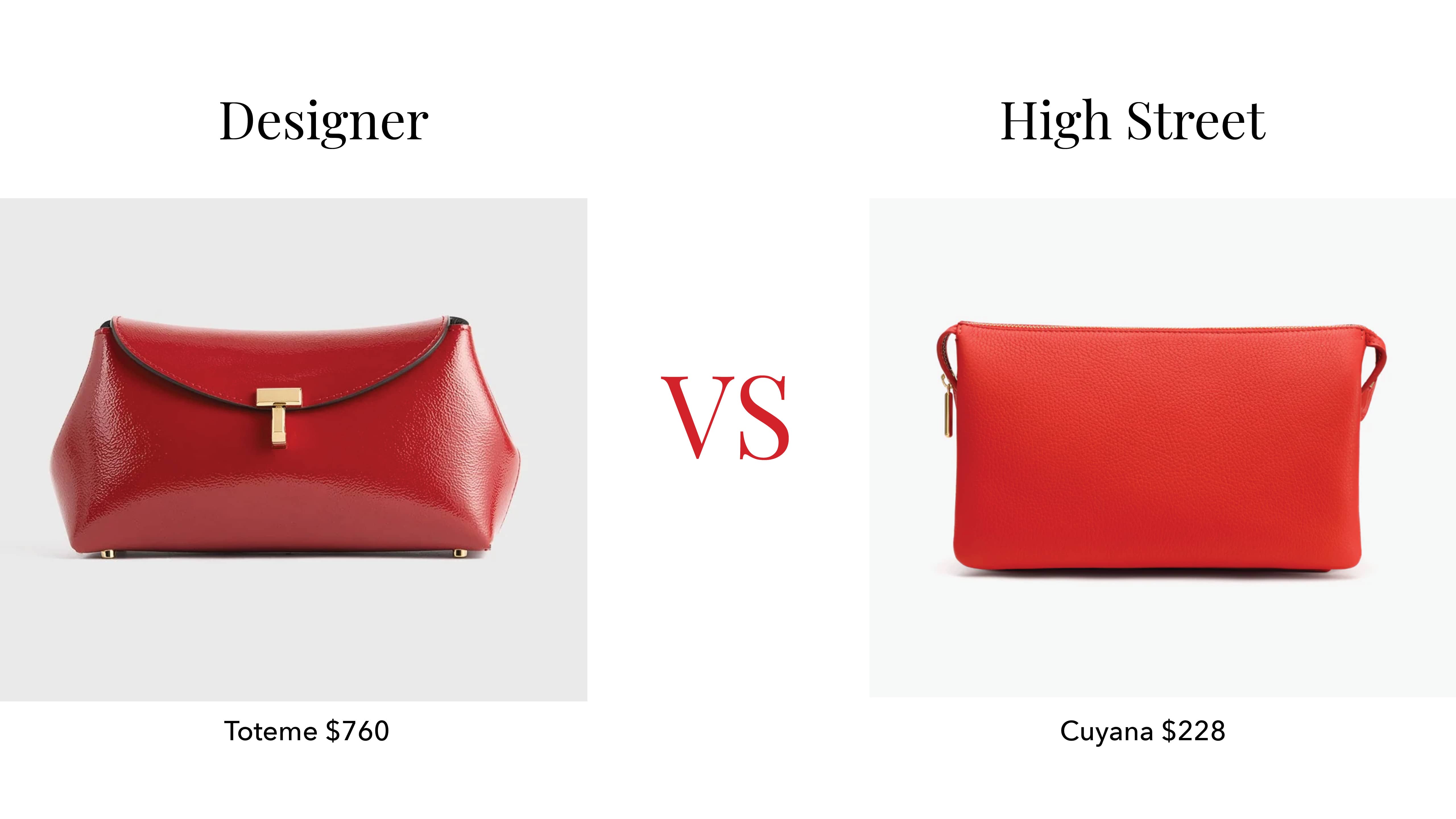 The high-end designer version from Toteme for $760, is sleek, curved, minimal, beautifully constructed. It feels refined because it is simple and done well.